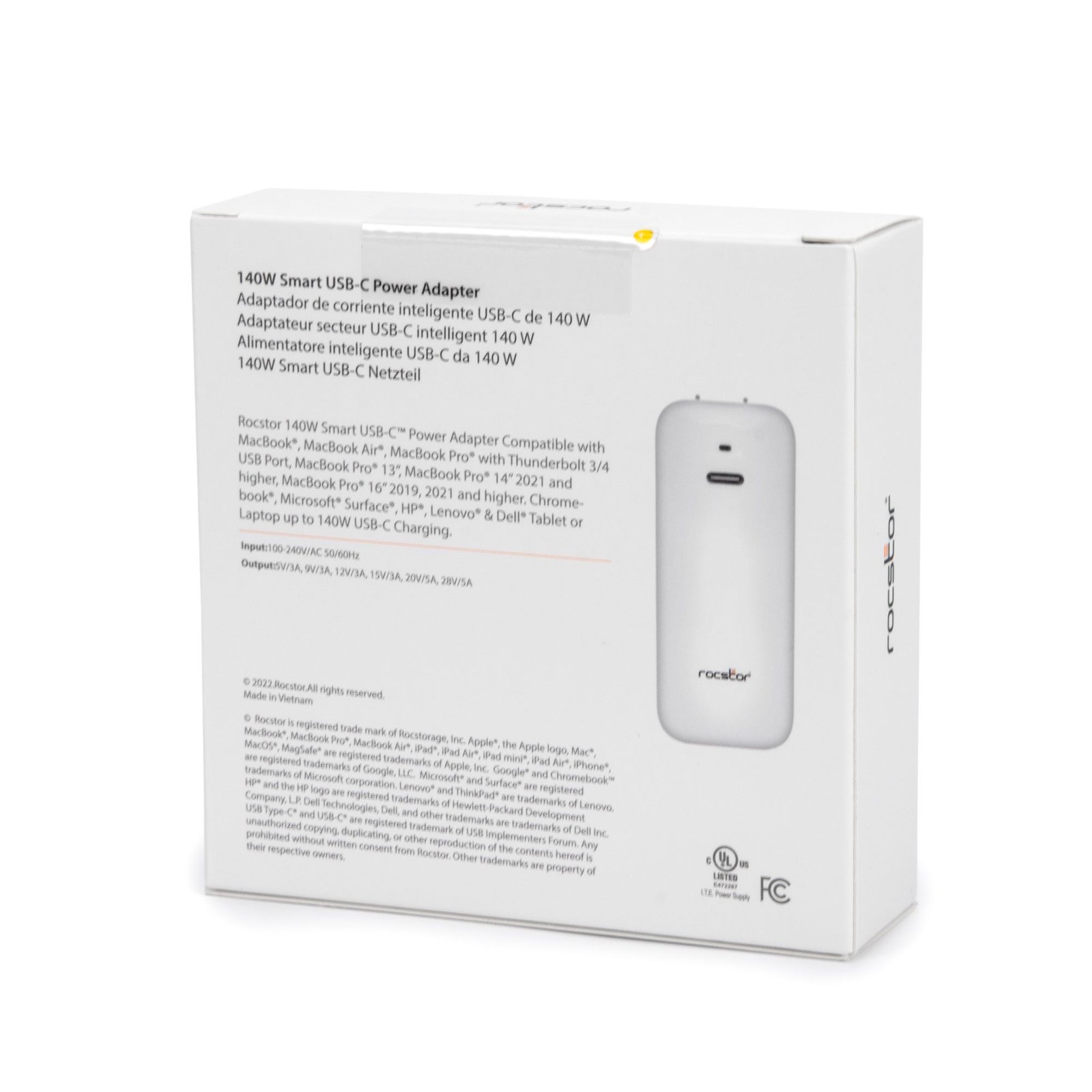Rocstor 140W Smart USB-C Power Adapter – For Apple® MacBook Pro® 16″ M1 & M1 Pro, MacBook®, MacBook Air®, MacBook Pro® 13″ MacBook Pro® 15″, MacBook Pro® 16″ with Thunderbolt 3/4 (USB-C), Chromebook® – Compatible with any USB-C–enabled Laptop device up to 100W – UL & FCC/CE Certified – GaN technology for reduced heat – White