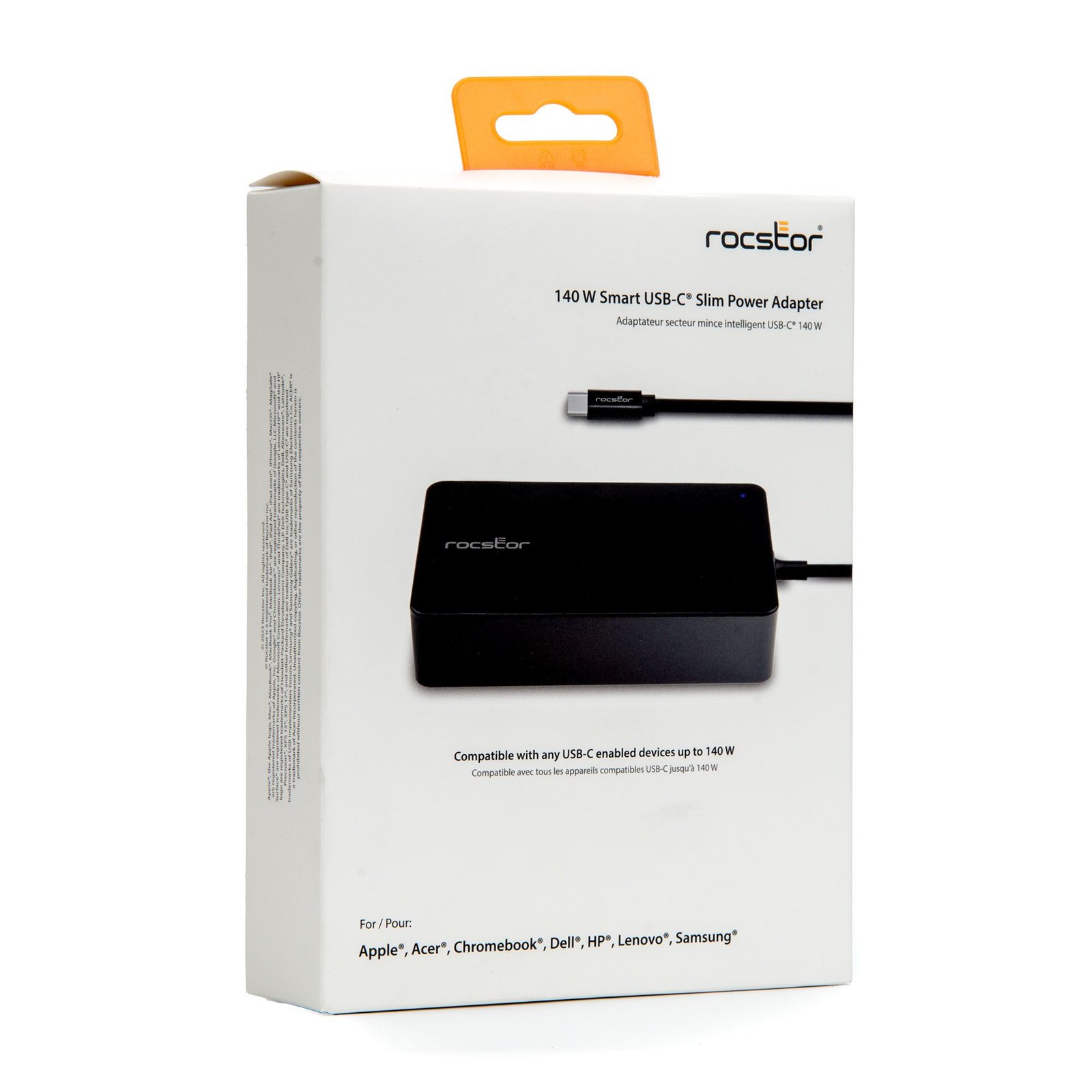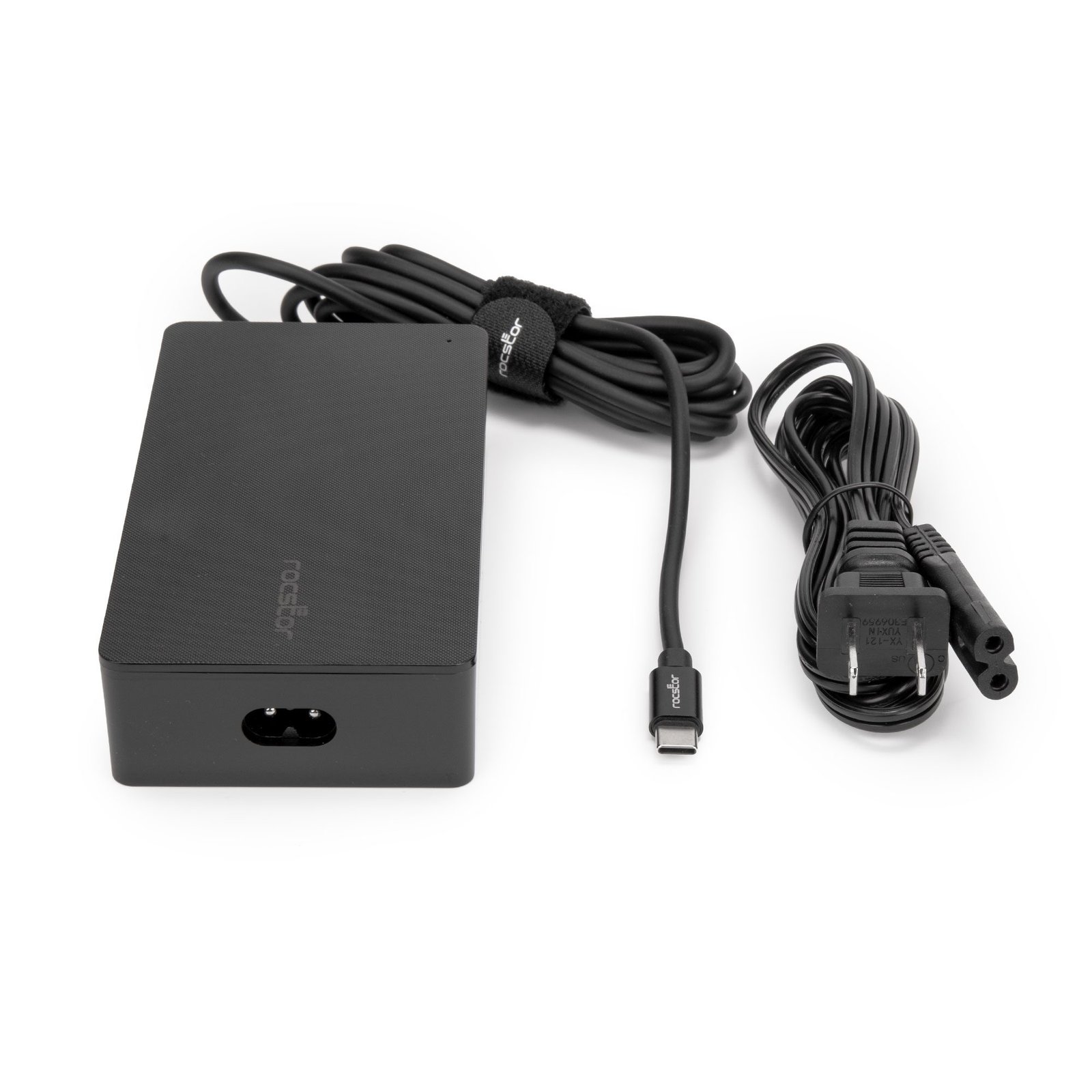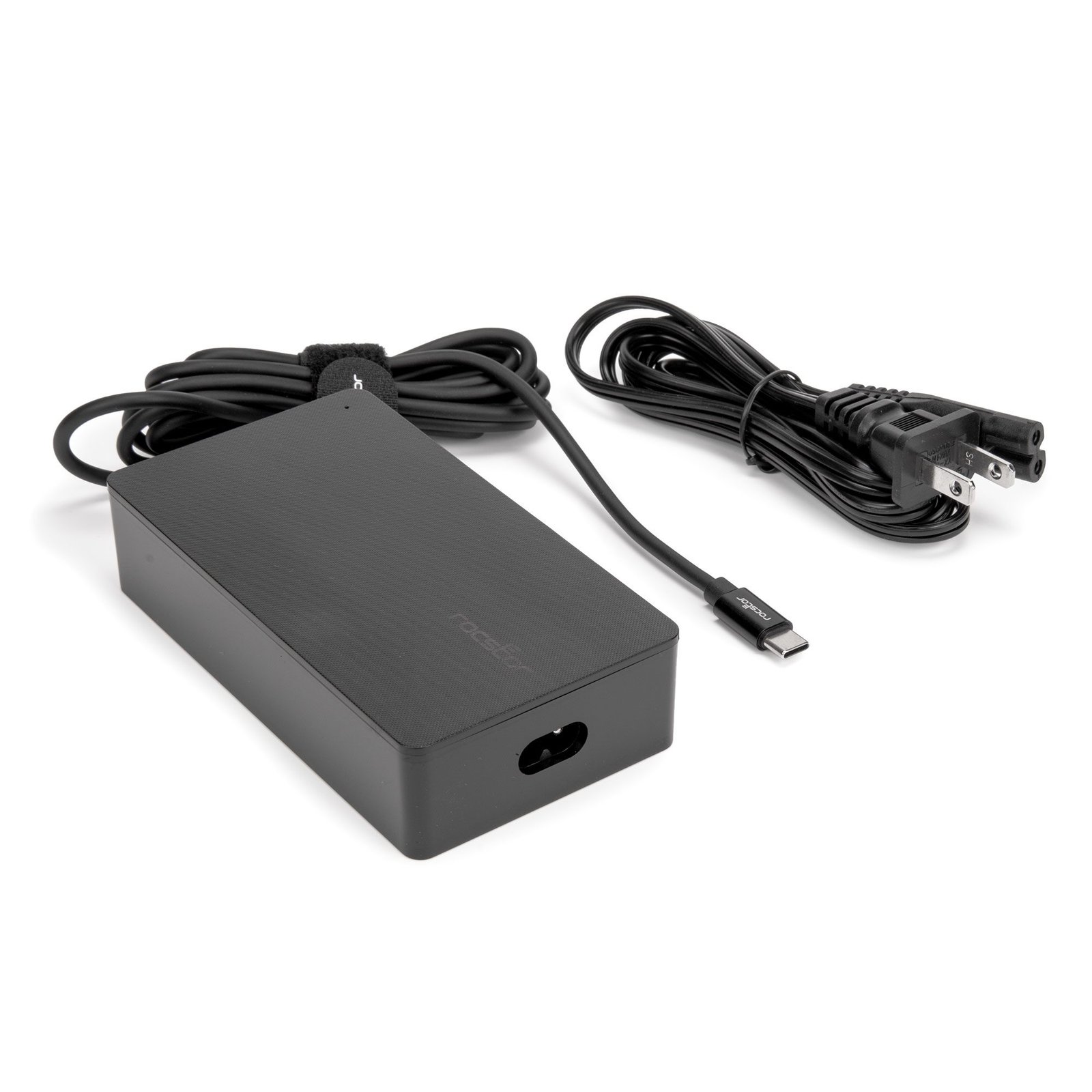 Rocstor 140W Smart USB-C AC Power Adapter – AC Charger – Compatible with Dell™, Apple®, Chromebook®, Samsung® Galaxy®- Compatible with any USB-C–enabled Laptop device up to 140W –UL & FCC/CE Certified – Rugged – Attached USB-C Cable – Adapter Size 5″x2.78″x1.18″ – 6.56′ (2m) Fixed USB-C Cable – 6.56ft (2m) UL Power Cable – AC110-240V – Black