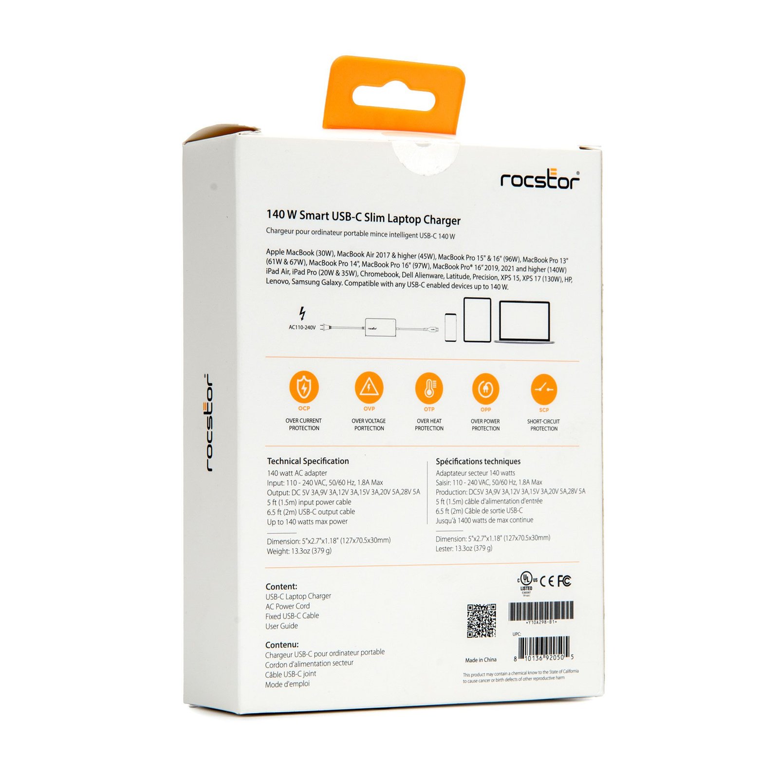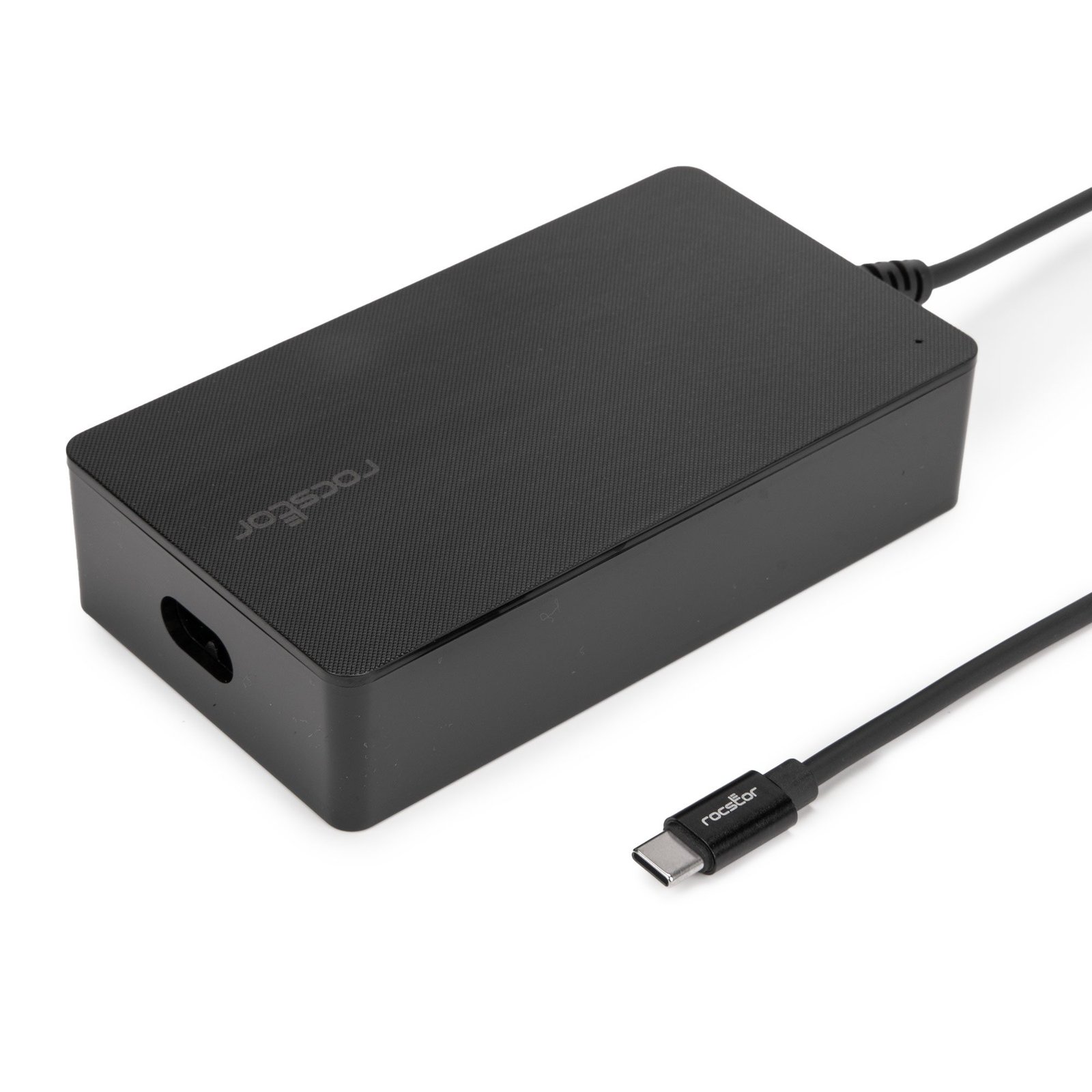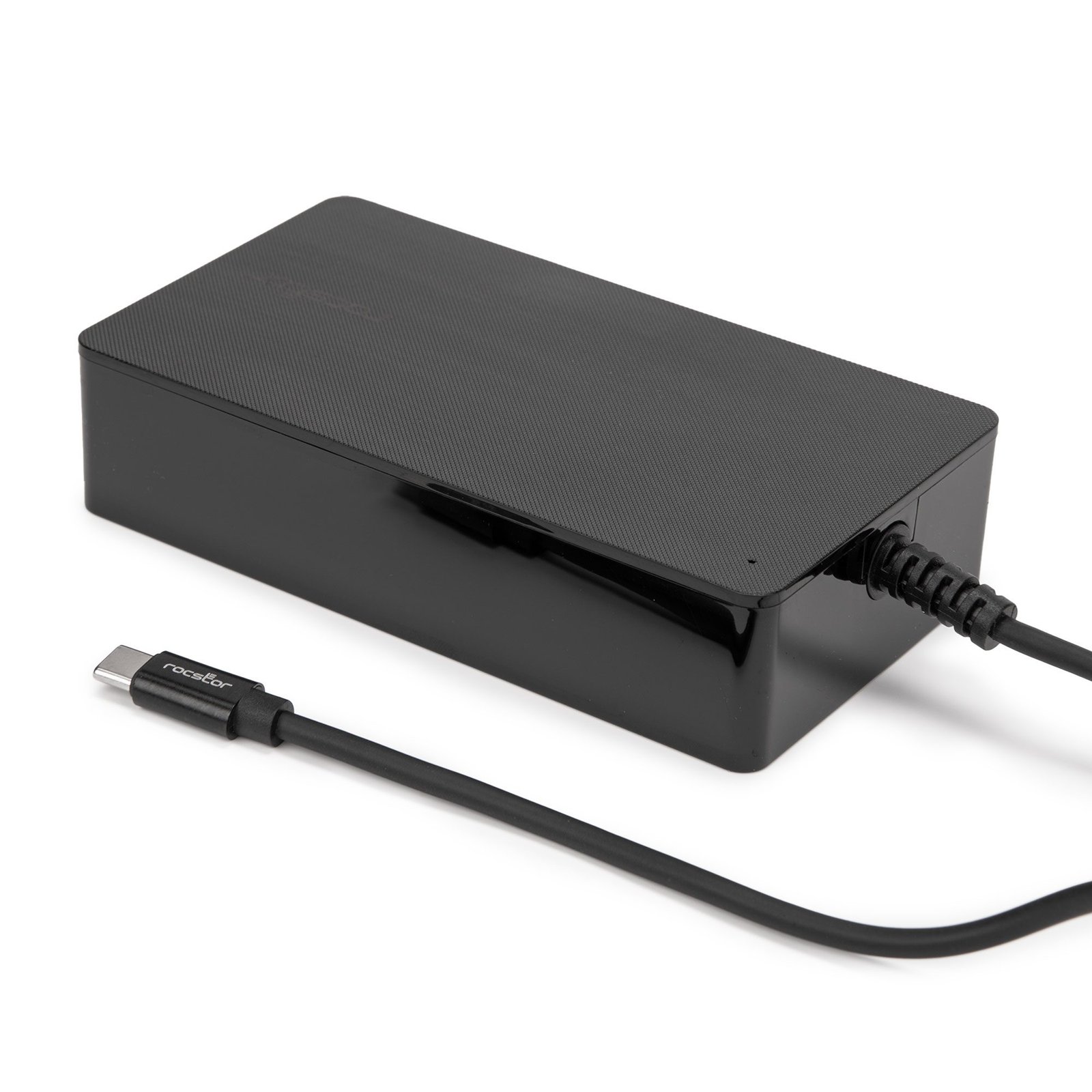 Rocstor 140W Smart USB-C AC Power Adapter – AC Charger – Compatible with Dell™, Apple®, Chromebook®, Samsung® Galaxy®- Compatible with any USB-C–enabled Laptop device up to 140W –UL & FCC/CE Certified – Rugged – Attached USB-C Cable – Adapter Size 5″x2.78″x1.18″ – 6.56′ (2m) Fixed USB-C Cable – 6.56ft (2m) UL Power Cable – AC110-240V – Black