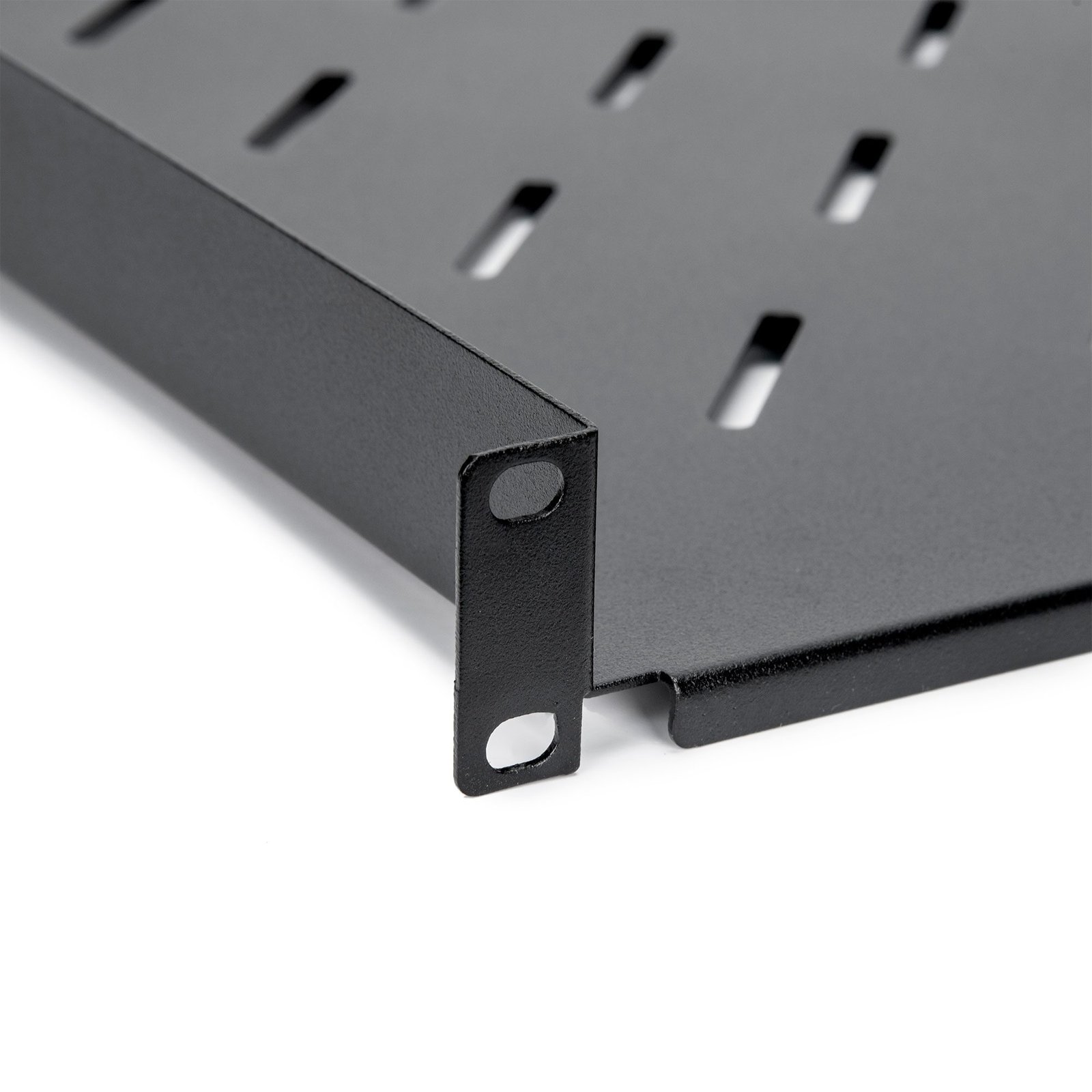1U Universal Vented Rack Mount Shelf – 17.72in Depth – Cold-rolled Steel (CRS) – Black