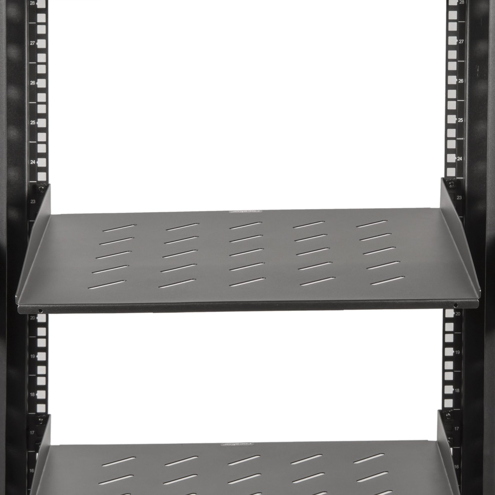 Add a vented, stable shelf into almost any server rack or cabinet. Any conventional 19-inch server rack or cabinet will accommodate the SolidRack Vented Shelf (1U). These ventilated rack shelves increase airflow and aid in reducing rack temperatures. For storing compact, non-rack mount equipment in your rack, the sturdy shelf has a weight capacity of 44 pounds (20 kg).