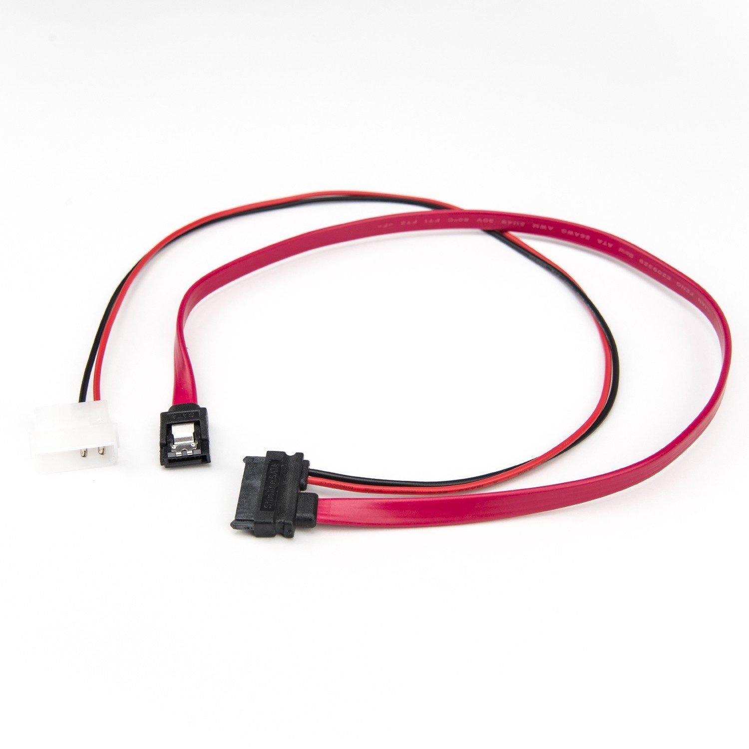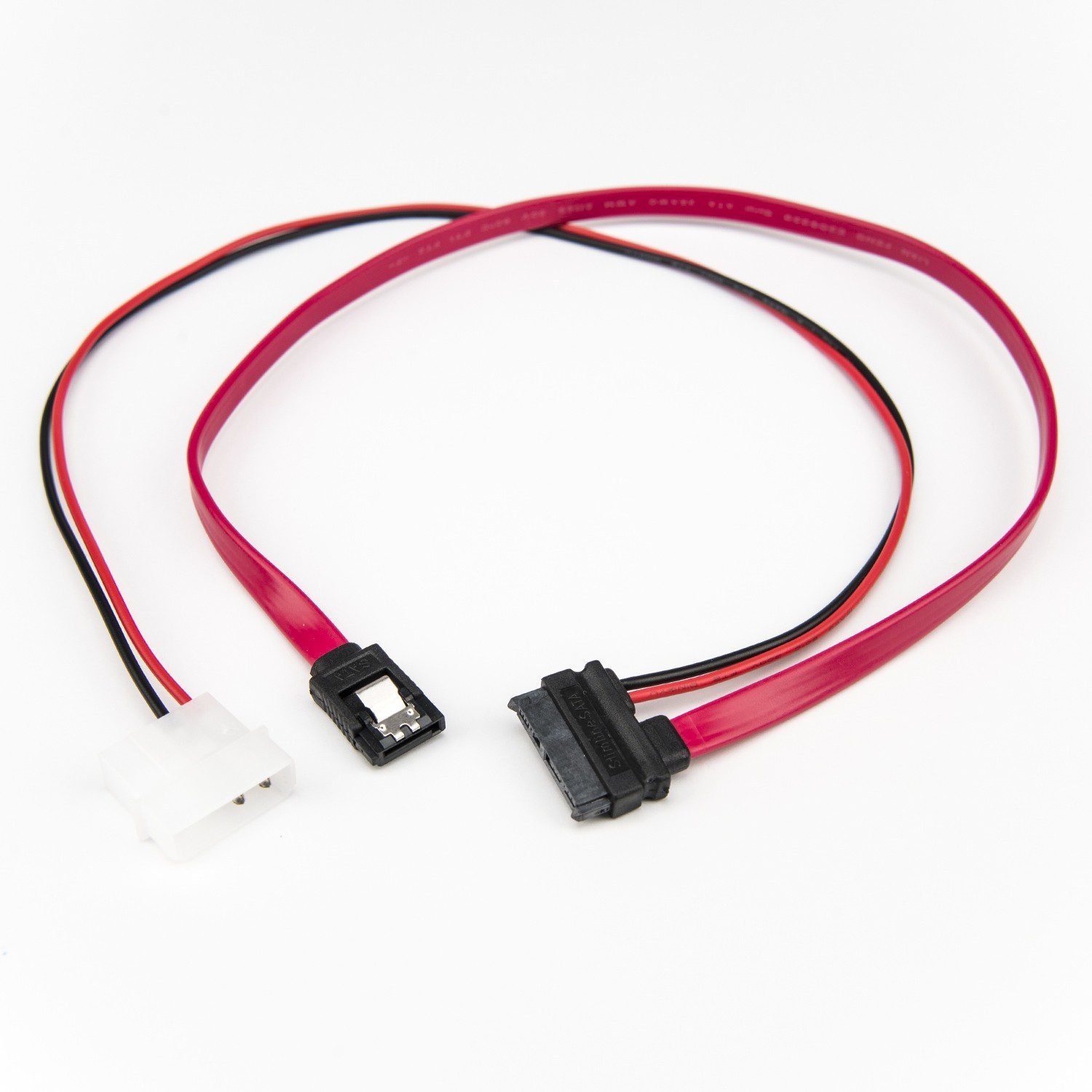 20 in / 50 cm Slimline SATA to SATA with LP4 Power Cable Adapter – 20 W/ LP4 Power Cable Adapter – Red