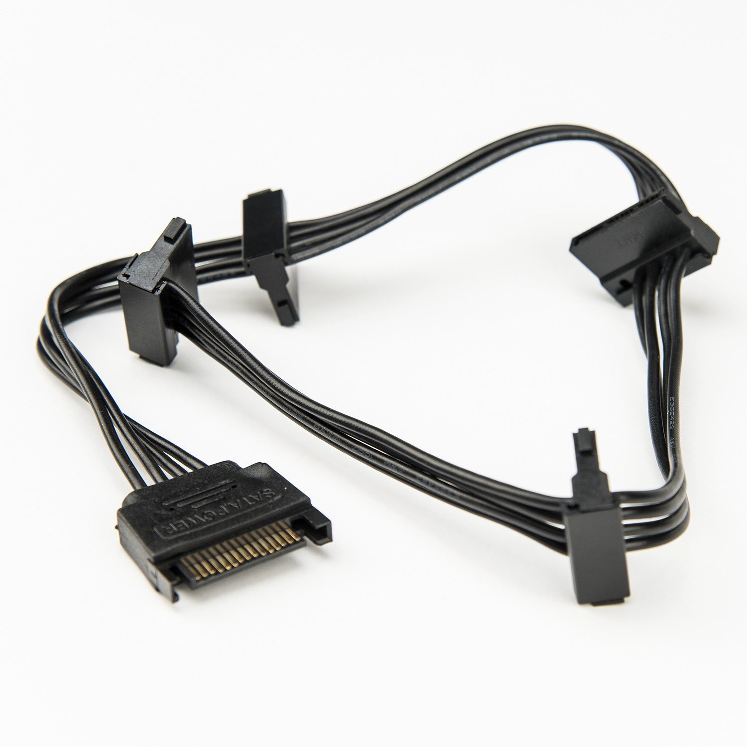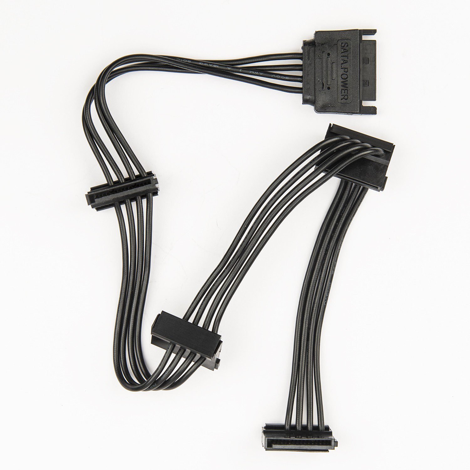15.7in 4x SATA Power Splitter Adapter Cable – SATA for Hard Drive – 1 Pack – 1 x SATA Male – 4 x SATA Female– Black
