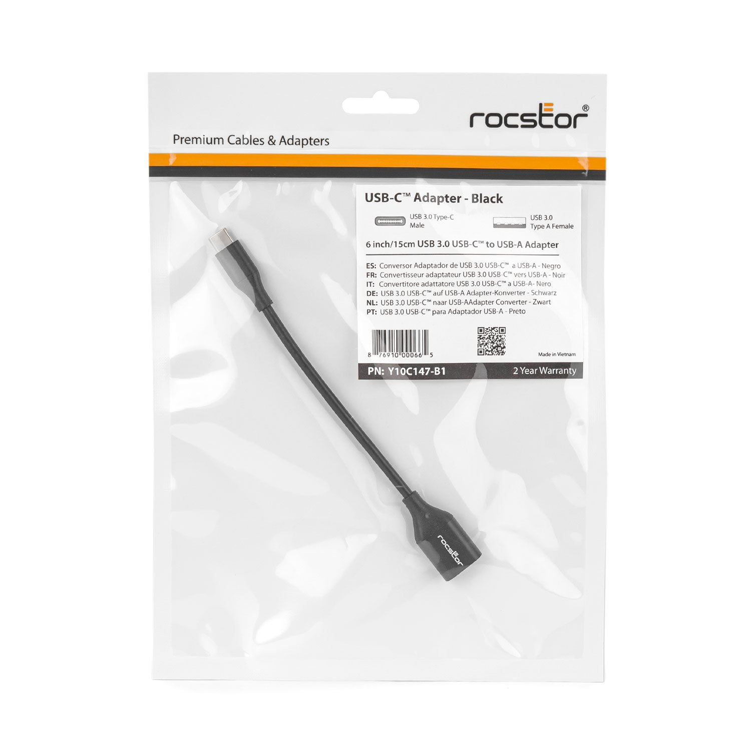 Rocstor Premium 6” USB-C to USB-A 3.1 Gen1 Adapter M/F – USB Type C to A Converter – 5Gbps High-Speed, For use of USB C devices such as Macbook Pro®, MacBook®, Chromebook®, and other USB-C devices – 1 Pack – 1 x USB Type C Male – 1 x USB Type A Female – Black Adapter