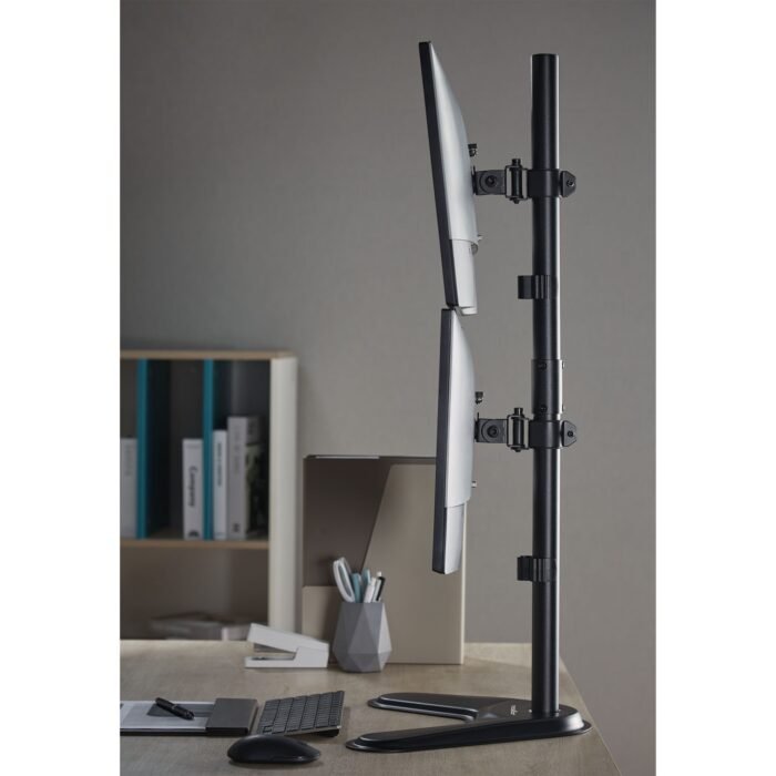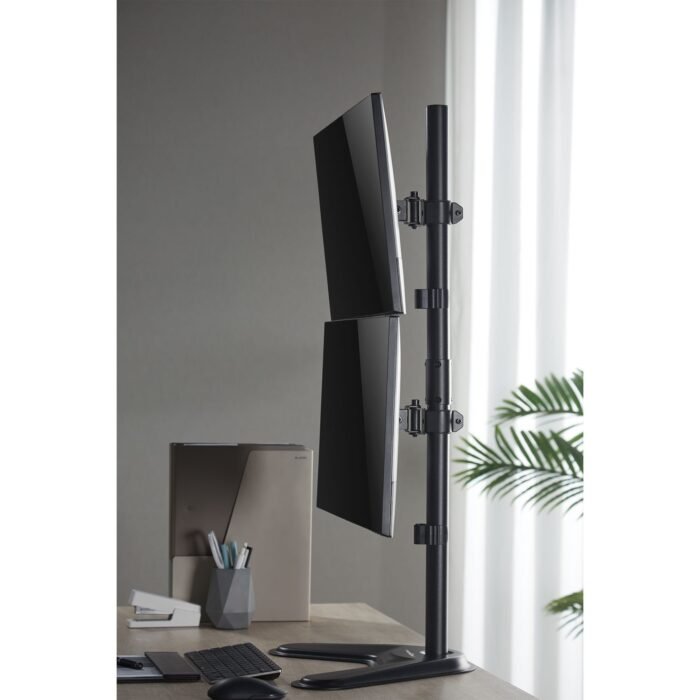 • Vertically supports up to two 32″ displays with a weight capacity of 9kg (19.8lbs) per screen