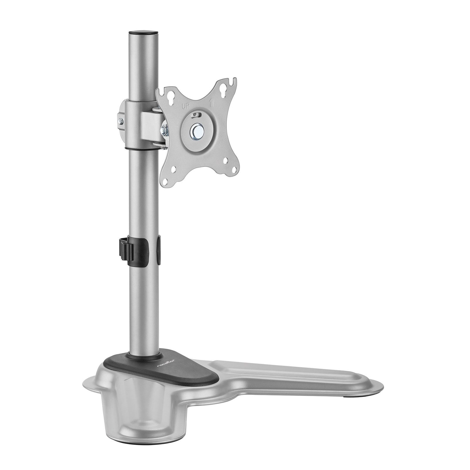 ErgoReach EP10 Premium Aluminum Single Monitor Stand, Supports Up to 32″ Display, 17.6 lb – Articulating Stnd & Heavy-Duty Pole Mount Free-standing, VESA 75×75 & 100x100mm- Ergonomic Tilt /Swivel – Cable Clip Management -Freestanding Aluminum – Silver