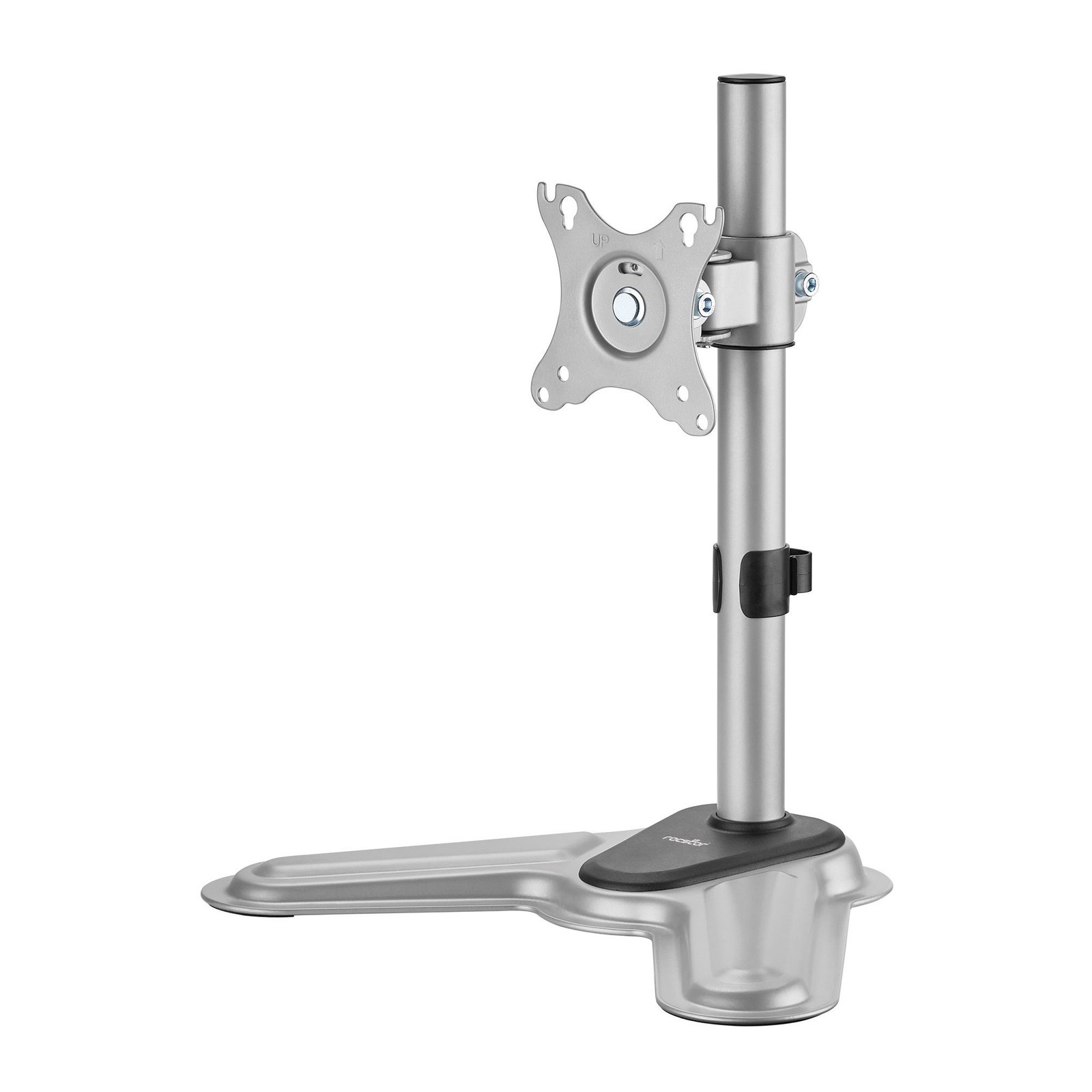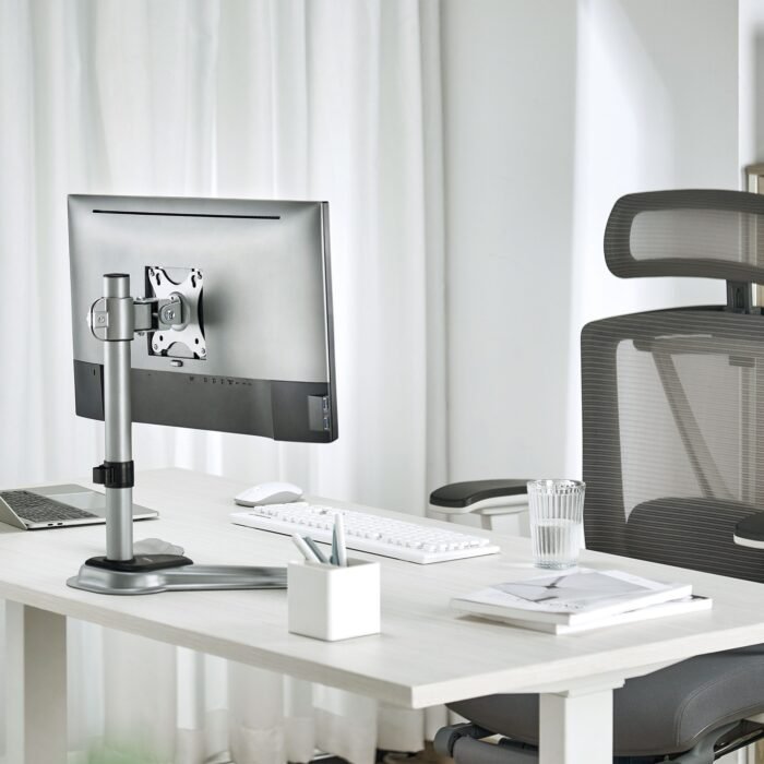 Rocstor ErgoReach EP10 Premium Aluminum Single Monitor Stand – your ultimate solution for a stylish and organized workspace. Designed with functionality and durability in mind, this heavy-duty pole mount free-standing single monitor mount is the perfect companion for displays up to 32 inches. With a weight capacity of 8kg (17.6lbs) per monitor and compatibility with VESA 75x75mm and 100x100mm, it’s a versatile choice for a range of monitors from 17 to 32 inches. The ErgoReach EP10 features a quick-release VESA plate and height adjustment, allowing for swift setup and personalized positioning, reducing eye strain and neck pain while boosting productivity. Its ergonomic tilt range of ±30° and swivel range of ±90° offer unparalleled comfort and flexibility. Keep your workspace tidy and organized with integrated cable clip management, enhancing the overall aesthetics of your setup. Embrace an agile and efficient workspace with the Rocstor ErgoReach EP10 Premium Aluminum Single Monitor Stand.