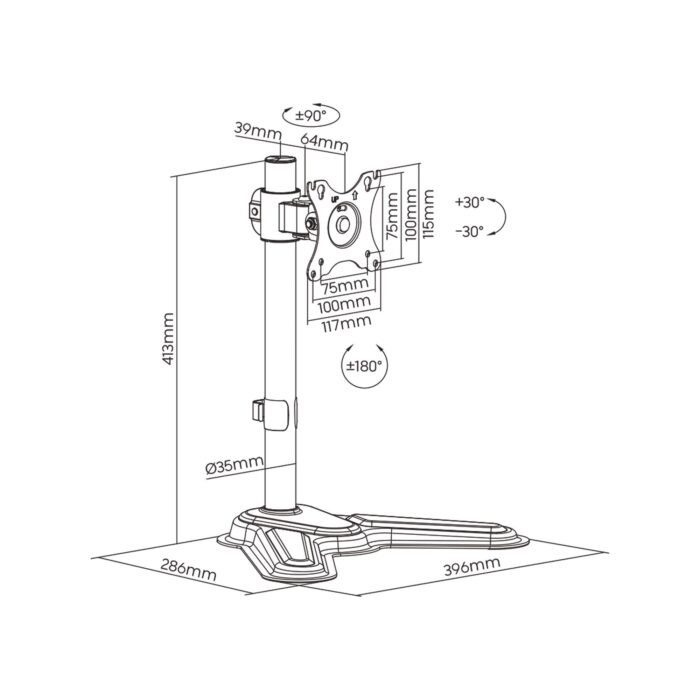 • Supports VESA 75x75mm & 100x100mm and accommodates 17″-32″ displays