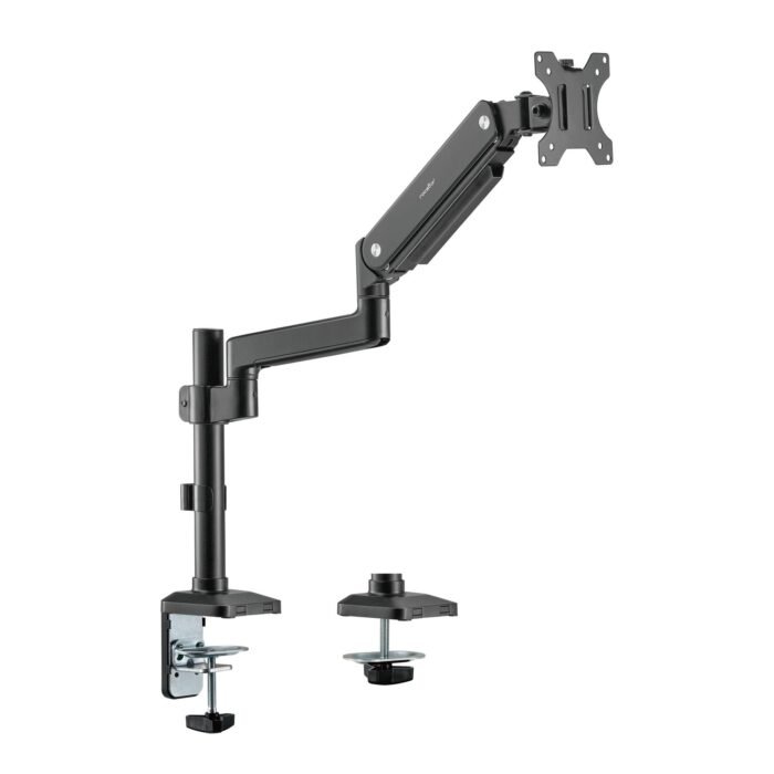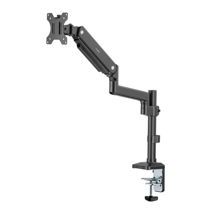 ErgoReach EP8 Premium Single Ergonomic Monitor Pole Mounted Arm, C-Clamp & Grommet – Supports up to 34″ Display, 22lb – Ergonomic Tilt/ Swivel – Full Motion Heavy Duty Articulating Arm – VESA 75×75 & 100x100mm – Aluminum Spring-assisted Construction – Black