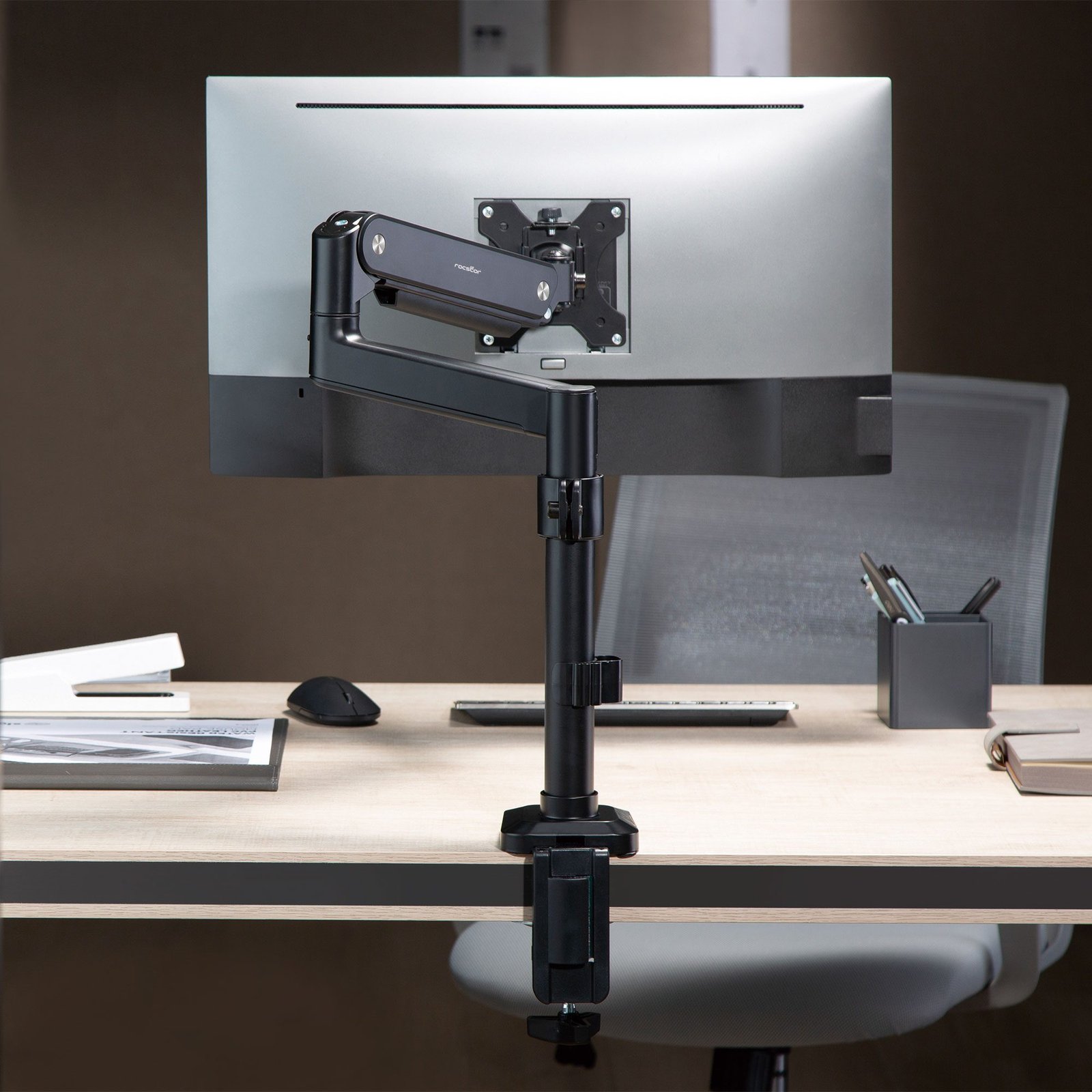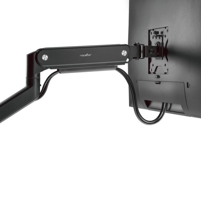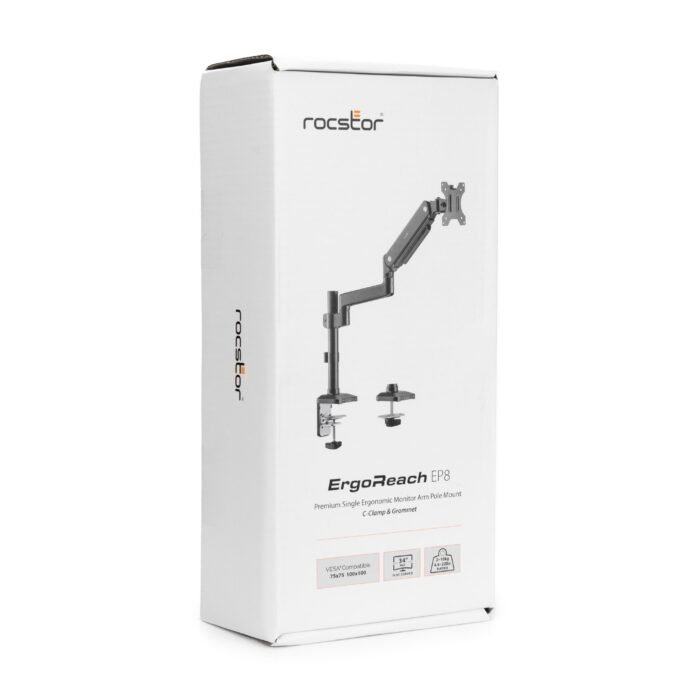 Installation is a hassel-free process thanks to the quick-release detachable VESA plate. Built-in Cable management keeps your workspace clean and tidy, while the integrated USB cable pass-through provides convenience for data and device charging. This monitor arm provides you two mounting options including both desk clamp and grommet for seamless integration into a variety of workspace configurations. It caters to both portrait and landscape orientations to match varying viewing needs. With a sleek design and a host of advanced features, this pole mounted monitor arm transforms your desk into a hub of efficiency. Crafted from a combination of steel, aluminum, and plastic and featuring a powder coating finish, it represents unwavering stability and longevity. This ErgoReach EP8 Premium Single Ergonomic Monitor Pole Mounted Arm is backed by Rocstor’s 5-year warranty and lifetime free technical support.