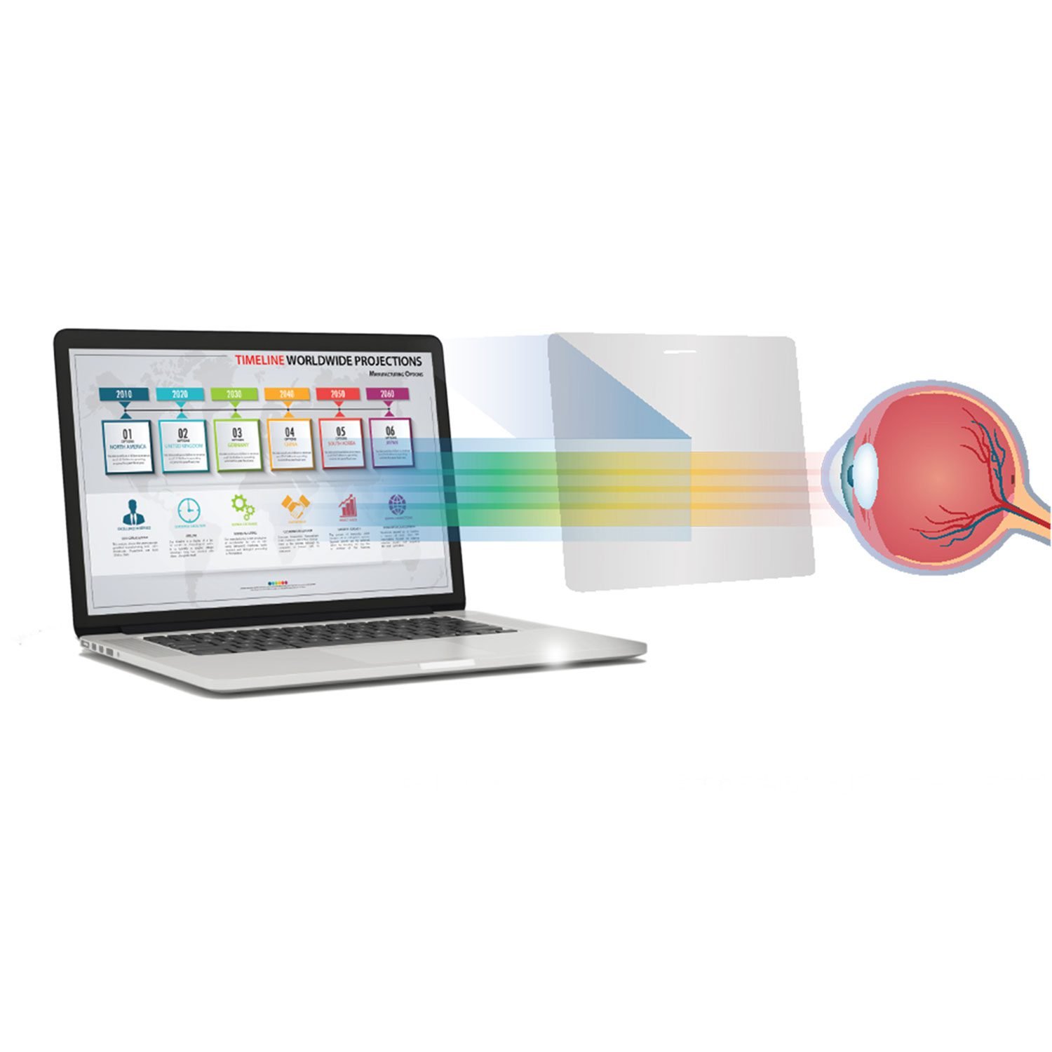 and Macbook Air® 13” Also for MacBook Air® 13, 2018-2021(M1). Rocstor’s new Apple® Macbook Pro® and Macbook Air 13” detachable magnetic filter delivers the most advanced Microlouver Privacy Technology. The new magnetic privacy filters from Rocstor can be easily installed and removed. Just place the filter on the Macbook Pro® and the strong magnetic strip on the filter securely and safely attaches to the top of the display. The PrivacyView™ filters protect from visual hackers and at the same time provides an amazing clear image for your direct view. Rocstor’s advanced Privacy technology protects your information with tiny vertical blinds that are built on the surface of the filter which narrows the viewing angle. The information on your display would be only visible directly in front of the display up to 30 degrees away from the center of the screen and the sides are blacked out from outside of 60-degree viewing angle. Rocstor filters reduce display blue light by 37%.