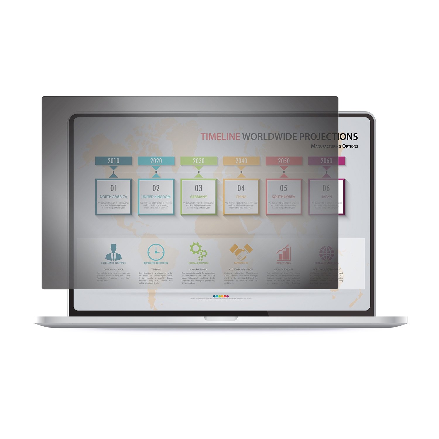 The Rocstor PrivacyView™ premium privacy and protection unframed filters provide a whole new level of security and privacy for your laptop. Rocstor 15.6” Widescreen filter, 16:9 aspect ratio privacy screen delivers the most advanced Microlouver Privacy Technology. Rocstor privacy filters can be used either in Glossy or Matte sides. The PrivacyView™ filters also protect from visual hackers and at the same time provides an amazing clear image for your direct view. Rocstor’s advanced Privacy technology protects your information with tiny vertical blinds that are built on the surface of the filter which narrows the viewing angle. The information on your display would be only visible directly in front of the display up to 30 degrees away from the center of the screen and the sides are blacked out from outside of 60-degree viewing angle. Rocstor filters reduce display blue light by 37%.