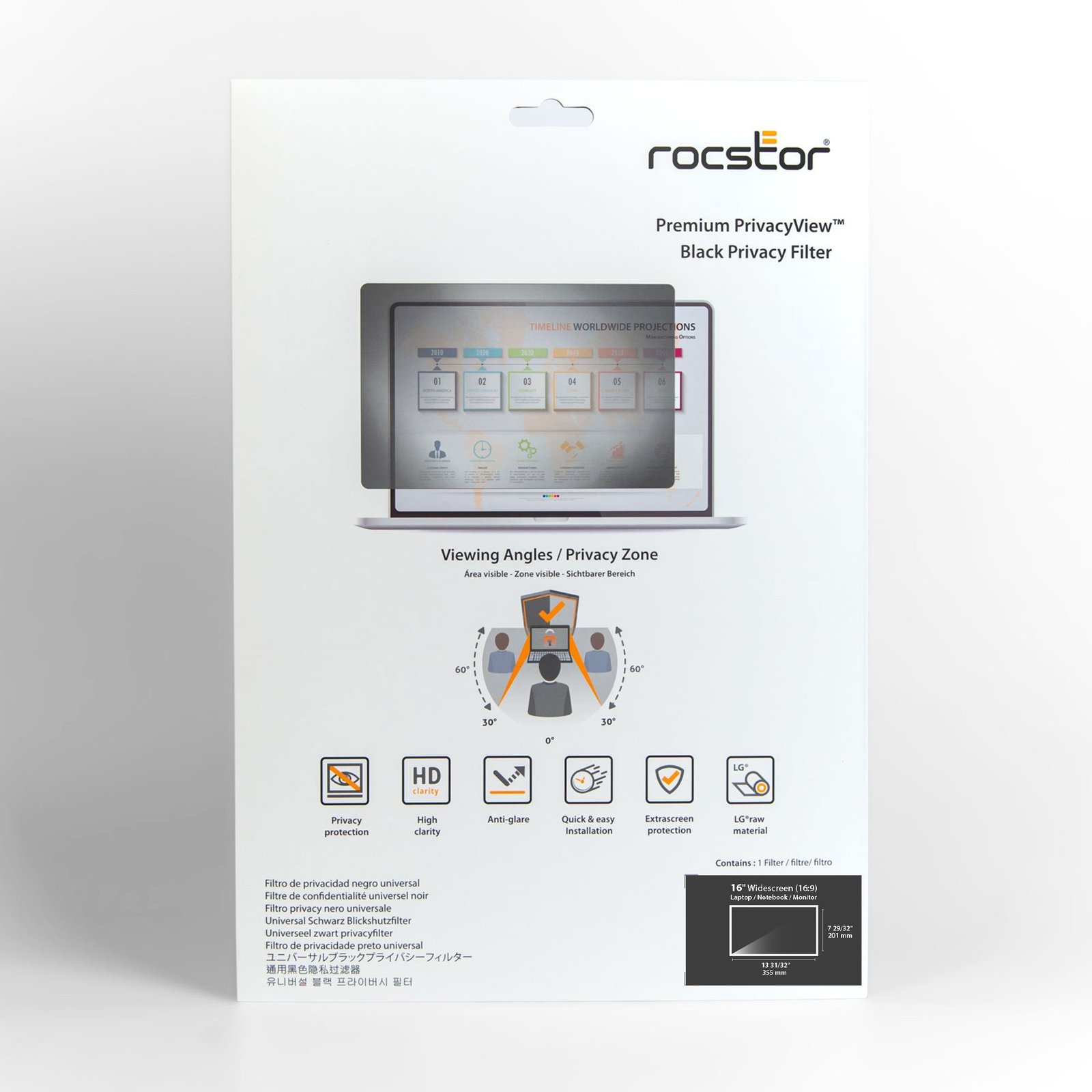 Rocstor PrivacyView™ Premium Privacy Filter for 16 Widescreen Notebook – For 16″ Laptop – 16:9 Aspect Ratio – Glossy / Matte – Unframed – Anti-glare – Comparable to PF160W9B -TAA Compliant – Black – For 15.6″ Widescreen LCD – Dust Resistant, Fingerprint Resistant – Anti-glare – TAA Compliant 16IN MONITOR UNFRAMED BLACK