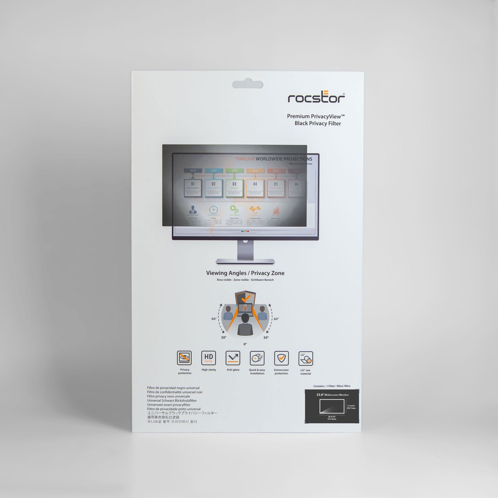 The Rocstor PrivacyView™ premium privacy and protection unframed filters provide a whole new level of security and privacy for your monitor. Rocstor 23.6” filter 16:9 aspect ratio privacy screen delivers the most advanced Microlouver Privacy Technology. Rocstor privacy filters can be used either in Glossy or Matte sides. The PrivacyView™ filters also protect from visual hackers and at the same time provides an amazing clear image for your direct view. Rocstor’s advanced Privacy technology protects your information with tiny vertical blinds that are built on the surface of the filter which narrows the viewing angle. The information on your display would be only visible directly in front of the display up to 30 degrees away from the center of the screen and the sides are blacked out from outside of 60-degree viewing angle. Use Rocstor’s PrivacyView™ screen filters to support compliance with privacy regulations such as Health Insurance Portability Accountability ACT (HIPAA) and Health Information Technology for Economics and Clinical Health (HITECH). Rocstor’s privacy screen filters are the means for protecting private and personal corporate, legal and medical records. Use your PrivacyView™ filters with confidence backed by exceptional Rocstor’s Two-year limited warranty.