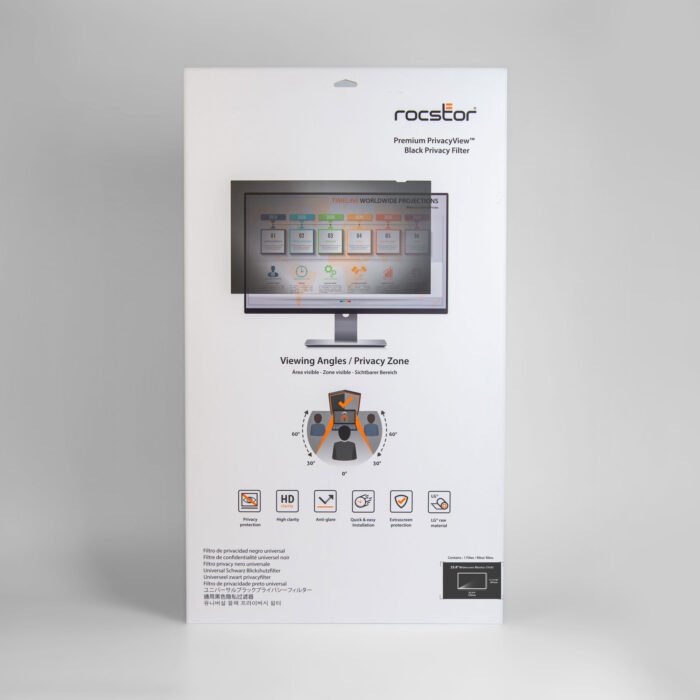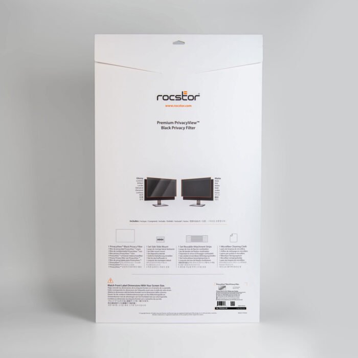 The Rocstor PrivacyView™ premium privacy and protection unframed filters provide a whole new level of security and privacy for your monitor. Rocstor 23.8” filter 16:9 aspect ratio privacy screen delivers the most advanced Microlouver Privacy Technology. Rocstor privacy filters can be used either in Glossy or Matte sides. The PrivacyView™ filters also protect from visual hackers and at the same time provides an amazing clear image for your direct view. Rocstor’s advanced Privacy technology protects your information with tiny vertical blinds that are built on the surface of the filter which narrows the viewing angle. The information on your display would be only visible directly in front of the display up to 30 degrees away from the center of the screen and the sides are blacked out from outside of 60-degree viewing angle.