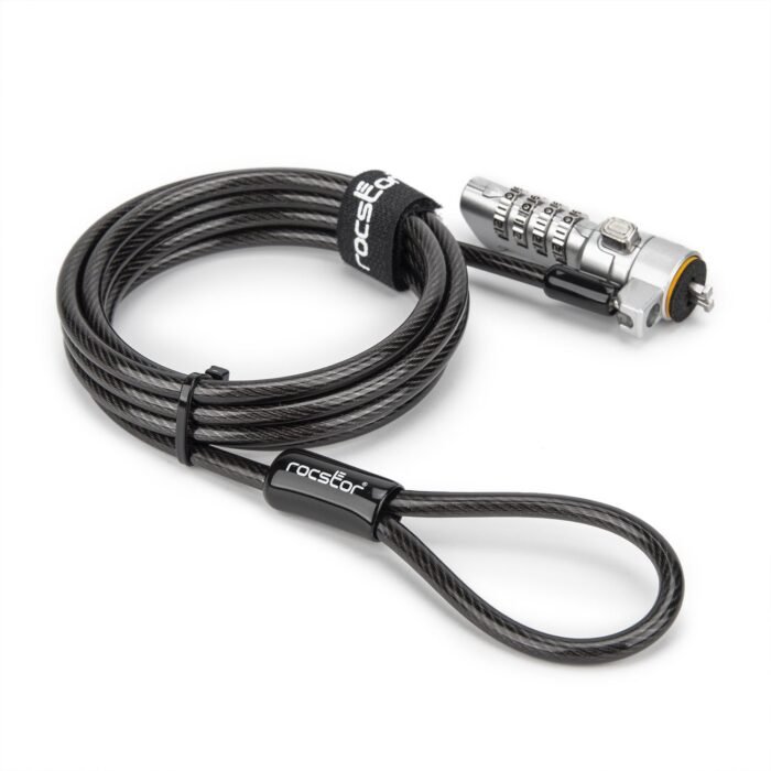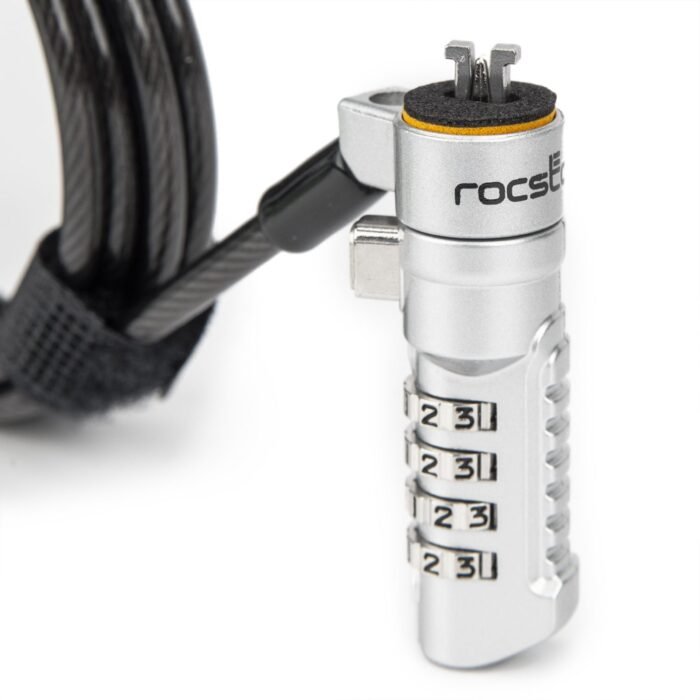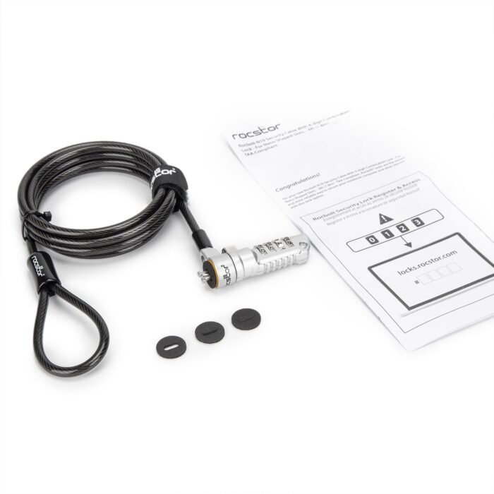 Rocstor Rocbolt N19 series Slim Security Cable With 4-digit Resettable Combination Lock – Slim Lock Head for HP® & Dell® devices with Nano Shaped Slots – 6′ (1.83m) 5mm Cable – Carbon steel Cable – Zinc Alloy Lock – TAA Compliant – Black cable