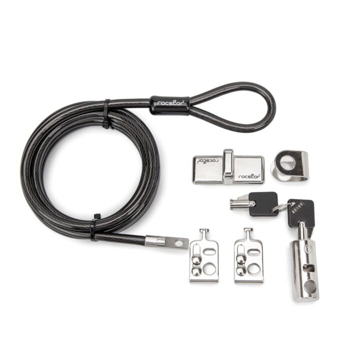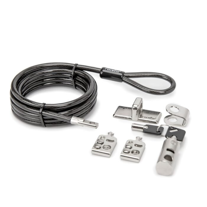 The kit supports up to four devices simultaneously and provides the flexibility to secure additional devices. For expanded security, additional locking eyelets can be purchased separately. Designed for both affordability and long-term protection, the Rocbolt Security Cable Kit is an essential solution for safeguarding valuable assets in shared workspaces. Each kit includes two (2) keys for convenience and backup access. Backed by a two-year warranty, it reflects Rocstor’s commitment to premium security solutions you can trust.