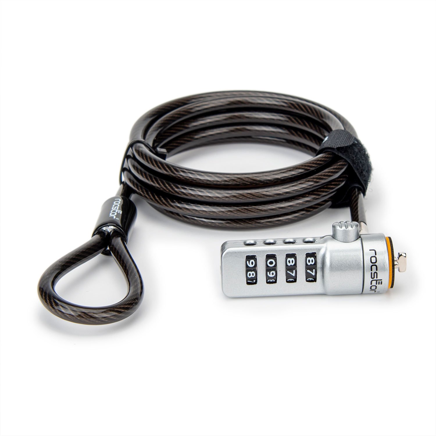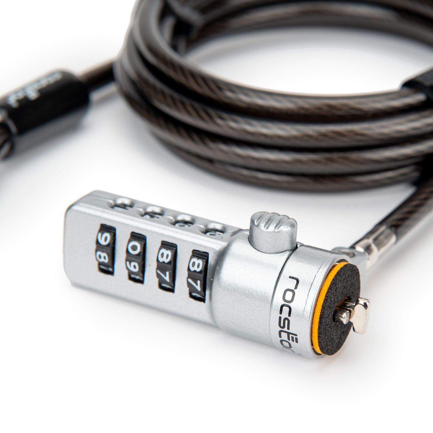 Rocbolt Portable Security Cable With Combination Lock – Resettable – 4-digit – Galvanized Steel, Zinc Alloy – 6 ft (1.8m) – For Notebook, Docking Station, Desktop Computer, Monitor – TAA Compliant