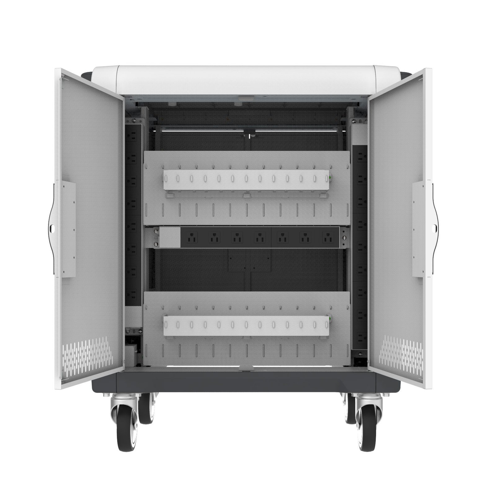 • Door Compartments: Two locking rear panels allow access to the AC adapters (Charging Cart) and cabling