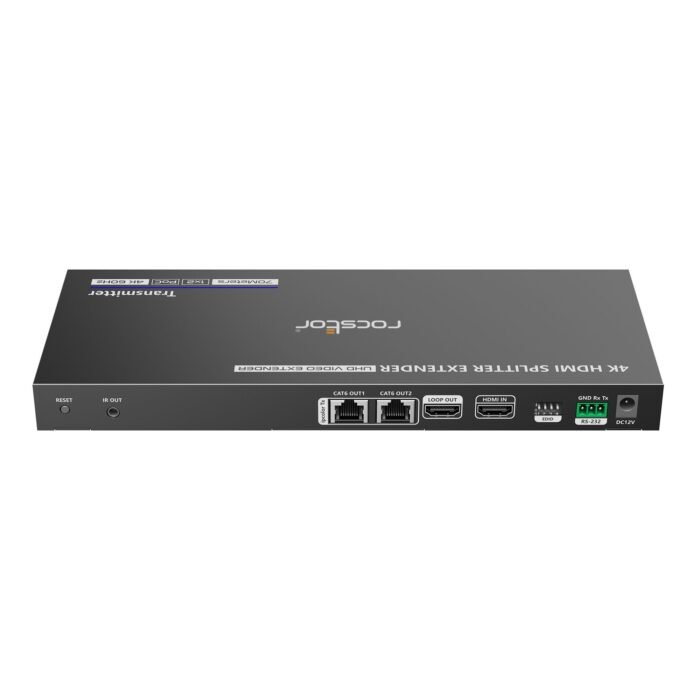 Equipped with advanced features like IR passback and RS-232 control, this device ensures flexible and efficient operation. The PoC (Power over Cable) technology simplifies installation by allowing the splitter to be powered through the network cable, eliminating the need for separate power supplies. With support for EDID, users can customize resolution settings to meet their specific needs, while the RS-232 control facilitates remote management. Whether you’re setting up a conference room, sharing content in a family environment, or enhancing a shopping mall display, the Rocstor TrueReach TR15 Splitter is built to deliver superior performance and reliability.