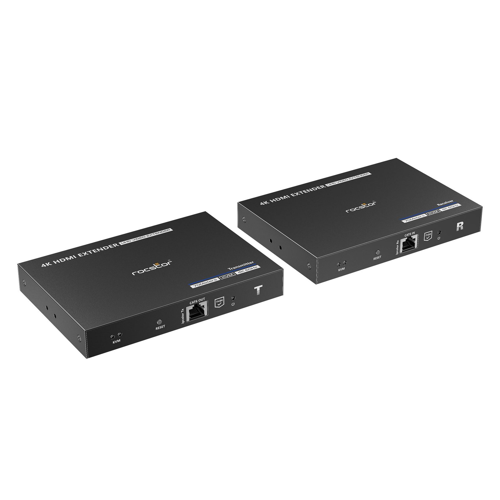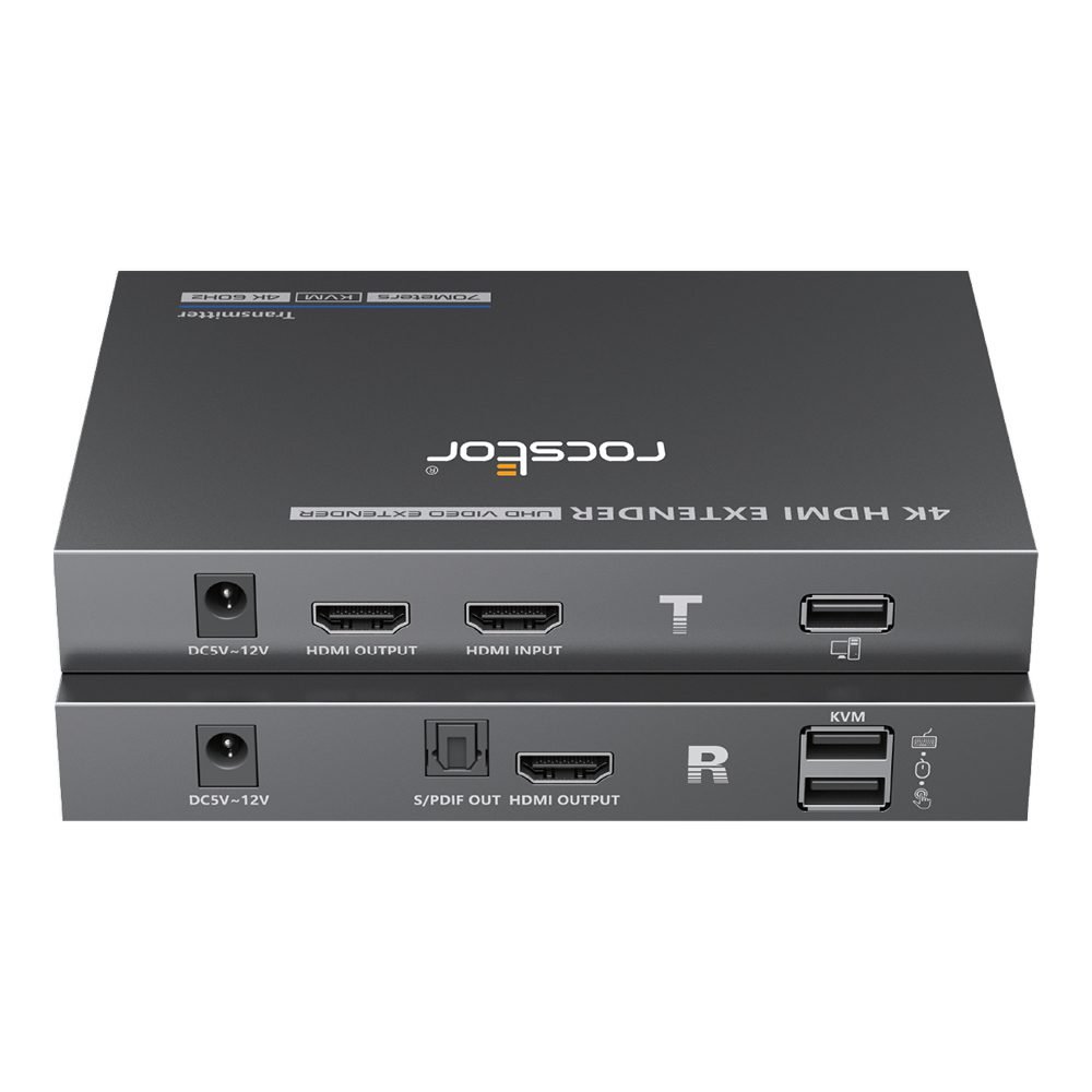 Enhance your workstation setup with the Rocstor TrueReach 4K@60Hz HDMI KVM Extender over CAT6/CAT6a/Cat7 Ethernet Cable. This powerful extender allows you to extend your HDMI and USB KVM signals over long distances, providing seamless control and high-quality video performance. With its advanced features and reliable performance, it is the perfect solution for professional environments, control rooms, and multimedia applications.
